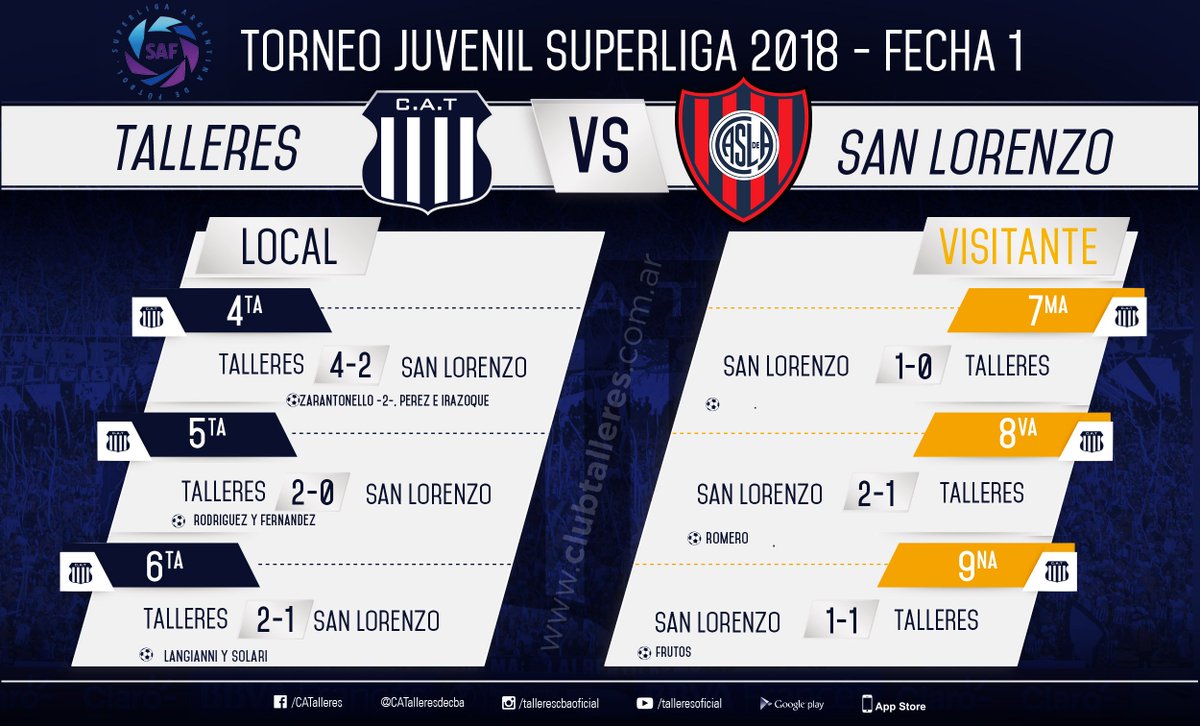 En lo que fue la primer fecha del torneo de Juveniles SAF, Talleres fue m谩s que San Lorenzo gracias a los puntos logrados como local.